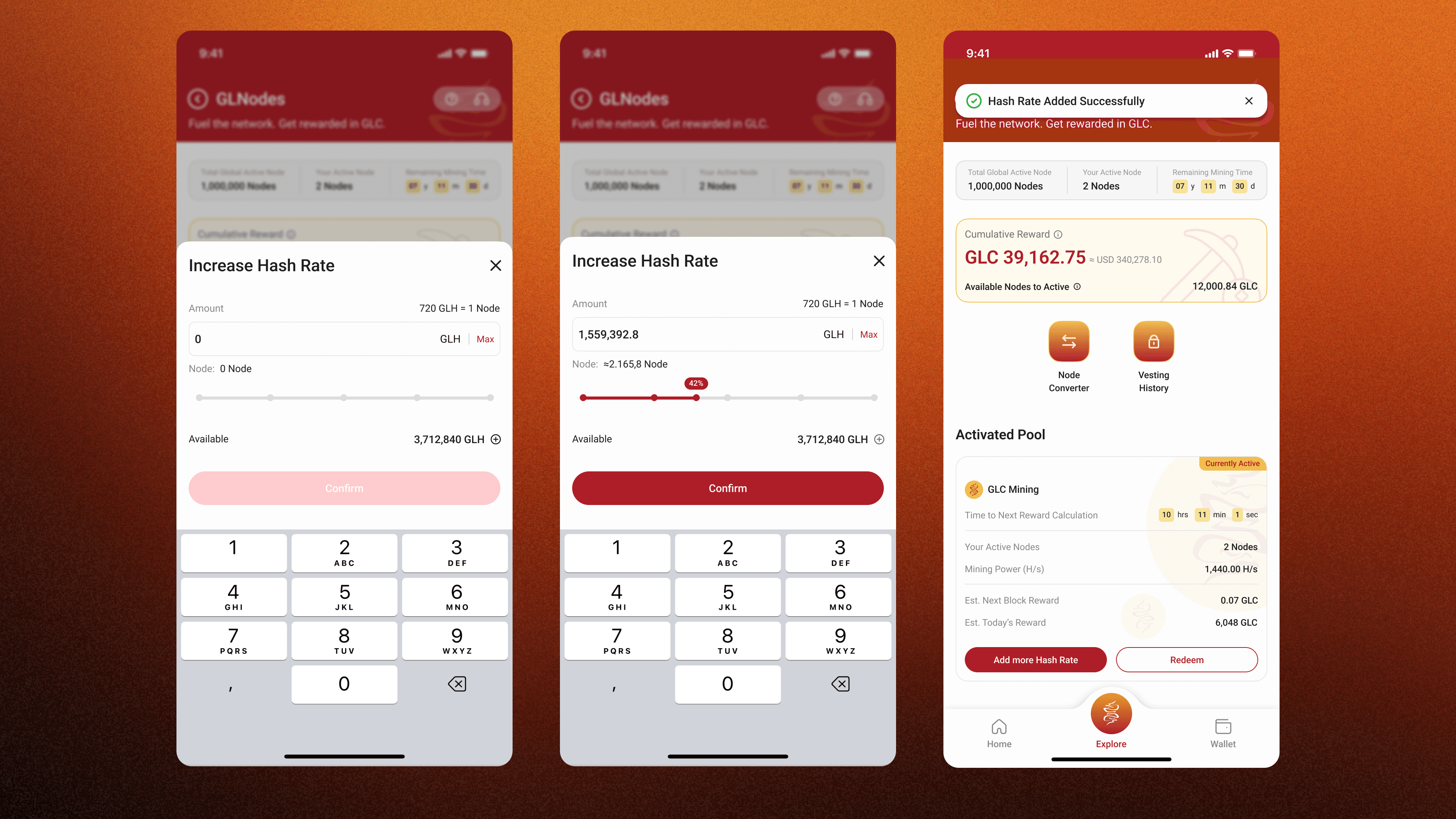Visualizing Real-Time Data I designed the Mining Dashboard to make technical performance easy to track. By displaying critical metrics—like "Mining Power" and "Time to Next Reward"—in clear, bite-sized cards, users can monitor their node's health instantly without getting lost in the numbers.