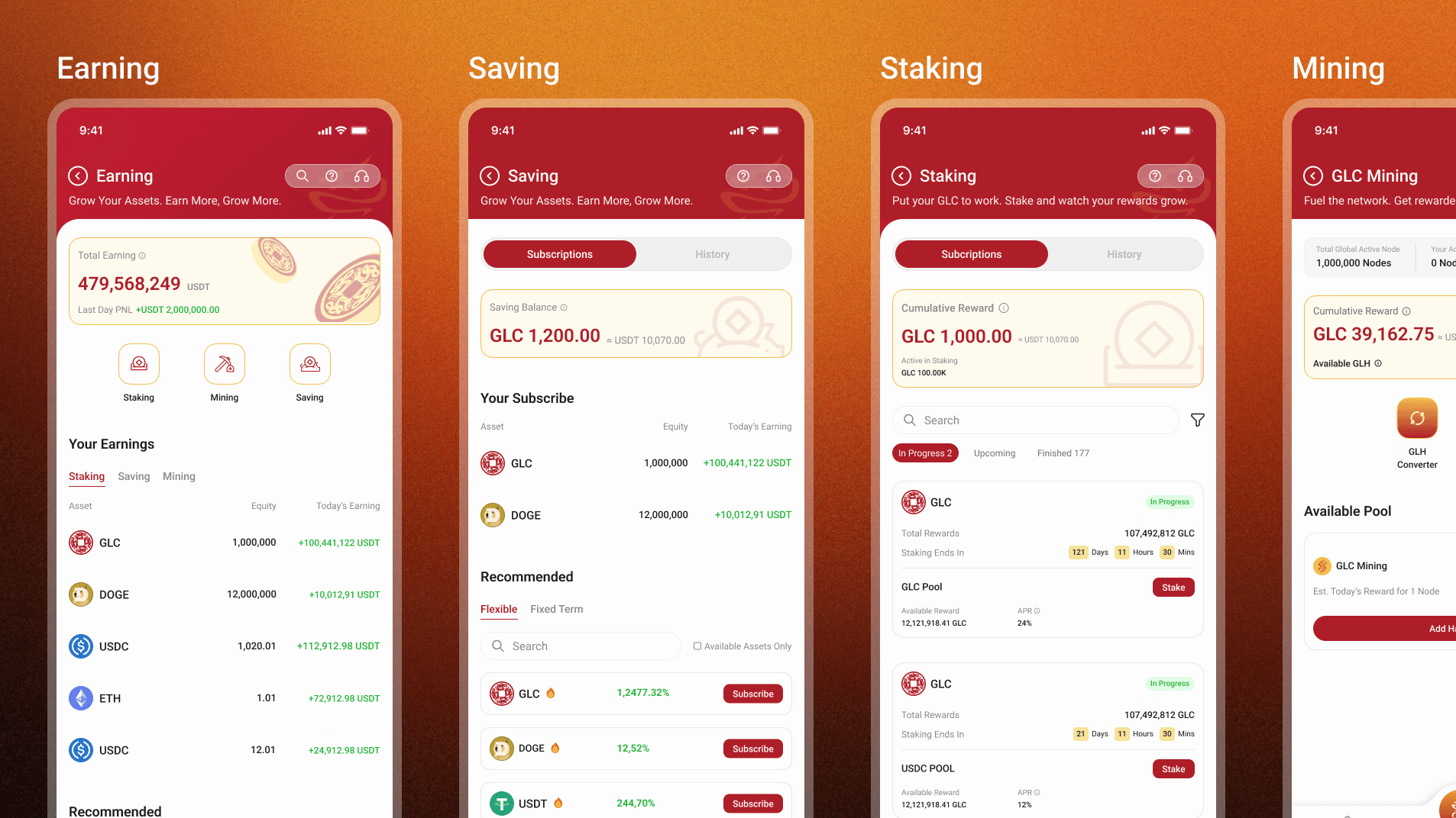 I transformed complex financial instruments (Staking, Mining, Saving) into a clean, unified interface that feels as simple as checking a bank balance