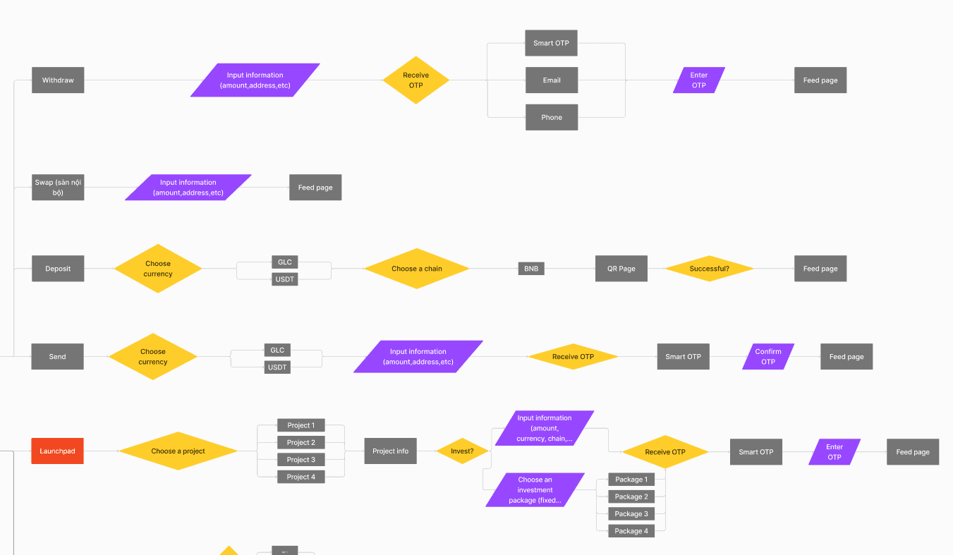 Building a "Super App" that combines traditional banking (Neobank) with Web3 features (Wallet, Mining, Staking) creates a massive web of user paths. A simple "happy path" wasn't enough; we needed to account for every security check and decision point